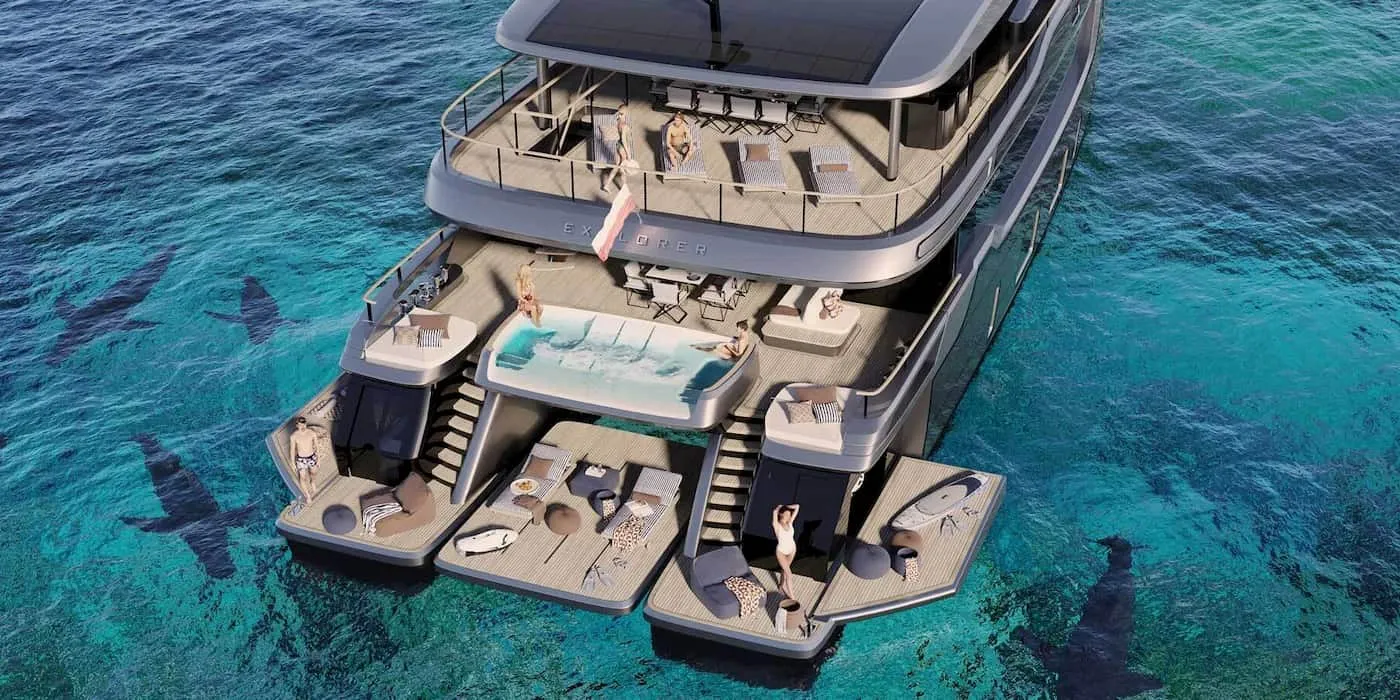 出名的奢华游艇制造商 Sunreef 发布了一艘新的 108 英尺(33 米)太阳能电动超级游艇的方案,该游艇配有自己的泳池水疗中心和室内剧院。Sunreef 以其舒适、诱人的美丽、超奢华的住宿和高性能而出名,持续以其奢华双体船打破边界。其客户包含网球巨星拉斐尔·纳达尔。